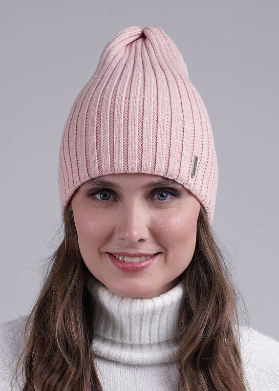 Женская двойная шапка, декорирована нашивкой логотип. Подойдёт для холодной осени- тёплой зимы.