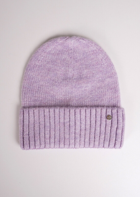 Шапка женская однослойная с отворотом, без подклада. Выполнена из высококачественной пряжи, декорирована стильной нашивкой. Станет не только отличной защитой от холода, но и модным аксессуаром.