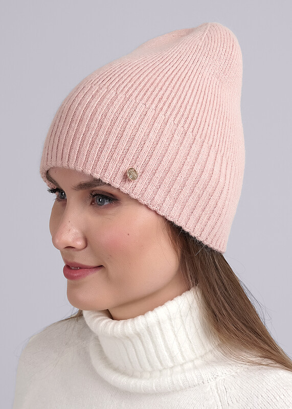 Женская двойная шапка, декорирована нашивкой логотип. Отлично подойдёт для зимы.