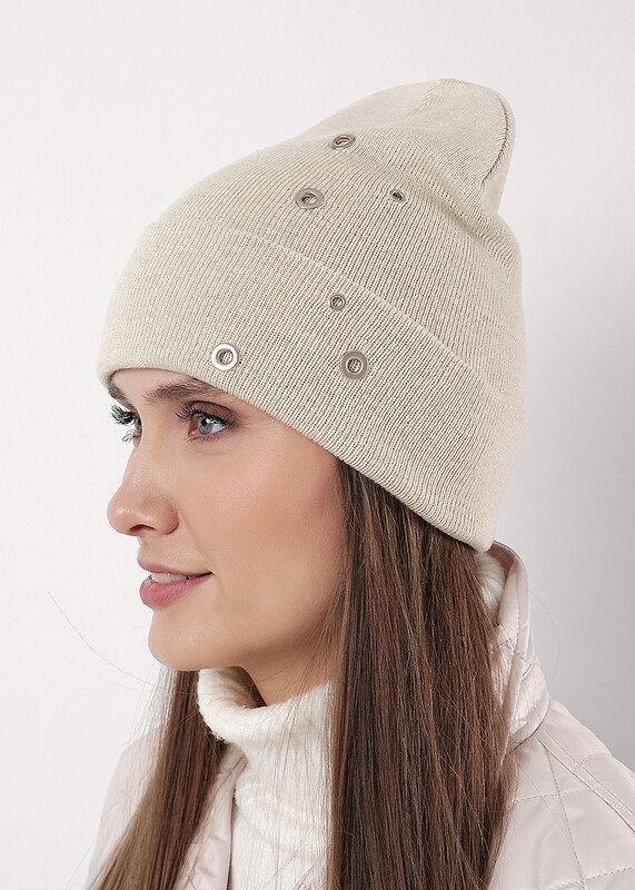 Шапка женская двойная из хлопковой пряжи, с отворотом, без утеплителя, декорирована люверсами. Идеально подойдёт для весенне - осеннего периода.