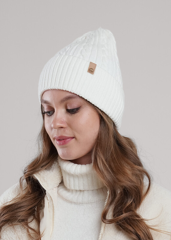 Шапка женская однослойная с отворотом, без подклада. Декорирована нашивкой логотип. Отдично подойдёт для осенне- весеннего периода.