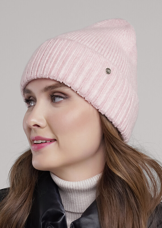 Шапка женская однослойная с отворотом, без подклада. Выполнена из высококачественной пряжи, декорирована стильной нашивкой. Станет не только отличной защитой от холода, но и модным аксессуаром.