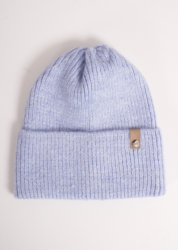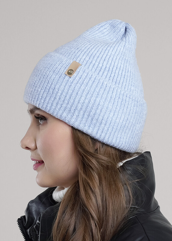 Шапка женская с отворотом, без подклада. Декорирована стильной нашивкой.