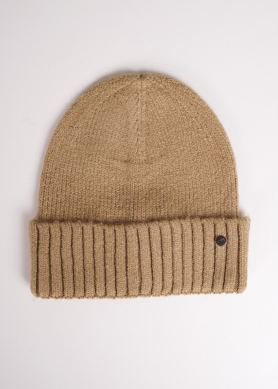 Шапка женская однослойная с отворотом, без подклада. Выполнена из высококачественной пряжи, декорирована стильной нашивкой. Станет не только отличной защитой от холода, но и модным аксессуаром.