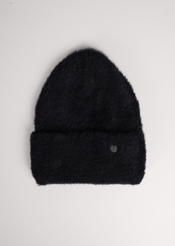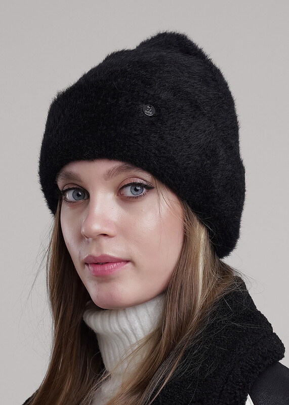 Женская двойная шапка с отворотом, без подклада. Выполнена из высококачественной пряжи, декорирована стильной нашивкой. Станет не только отличной защитой от холода, но и модным аксессуаром.