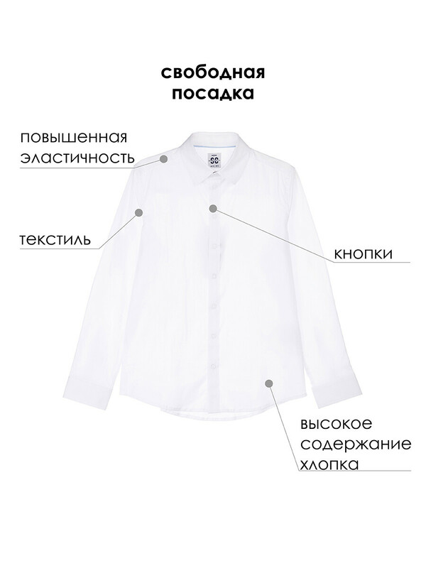 Эта строгая, лаконичная, элегантная рубашка для мальчика с длинным рукавом — настоящая классика школьного гардероба. Она легко впишется в повседневный образ и придаст нужную строгость для торжественных мероприятий: 1 сентября, классных собраний и выпускных. Универсальный дизайн, сдержанный стиль и продуманный крой делают эту рубашку незаменимой в гардеробе школьника.