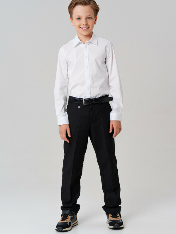 Стильная школьная рубашка приталенного кроя — идеальный выбор для торжественных мероприятий и повседневной школьной носки.