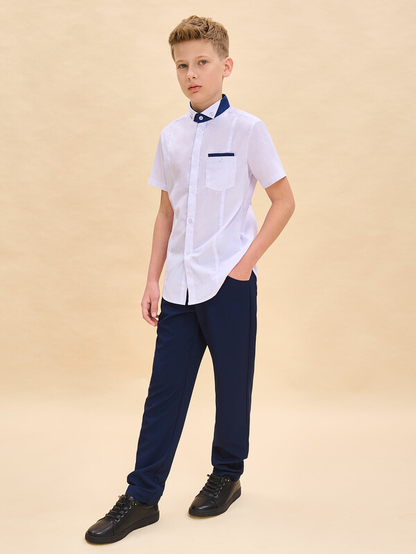 Рубашка для мальчика школьная - это не просто одежда, это ключ к стильному и уверенному облику в школе. Сорочка для мальчика прилегающего силуэта и вертикальными рельефами. Внимание к деталям - это наше кредо. Воротник с классической невысокой стойкой из контрастной ткани, с отгибающимися уголками, придают рубашке неповторимый шарм. Темные отделочные элементы делают уход за рубашкой меньше заботным. Добавление кармана с имитацией платочка в передней части придаёт этой сорочке неповторимый стиль и оригинальность. Мы заботимся о комфорте ваших детей, поэтому в составе преобладает качественный хлопок, благодаря чему рубашка школьная хорошо пропускает воздух, давая коже дышать. Полиэстер добавляет прочности и сохраняет форму изделия на протяжении всего дня. Для школьных рубашек мы используем сорочечную ткань, плотностью 100Гр/м2. В нашем ассортименте представлена не только белая сорочка, но и другие классические цвета, такие как синий и голубой, которые легко сочетаются с различными школьными аксессуарами. Рубашка для мальчика - не просто школьная форма, это выбор стильного образа для любого дня. Рекомендуемые инструкции по уходу: стирать при температуре не выше 30 °C, без предварительного замачивания, с изнанки, расправить перед сушкой. Это поможет сохранить качество и цвет на длительное время. Выбирайте размер в соответствии с таблицей размеров на фотографии. Пожалуйста, имейте в виду, что цвет товара на экране вашего устройства может отличаться от реального цвета изделия.
