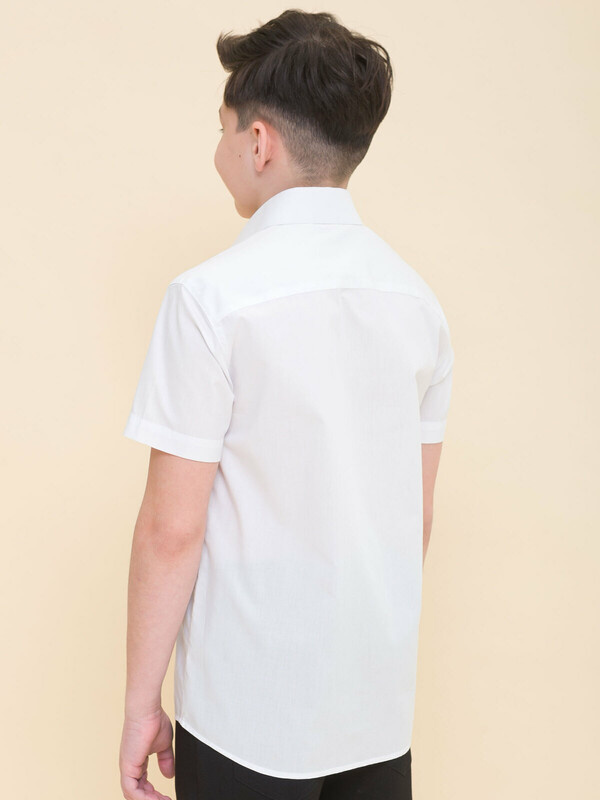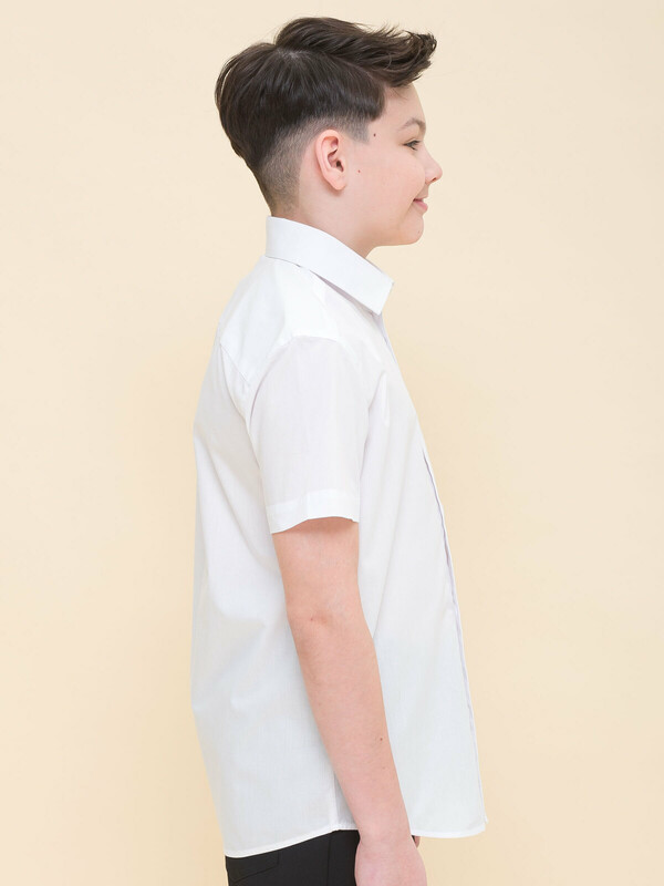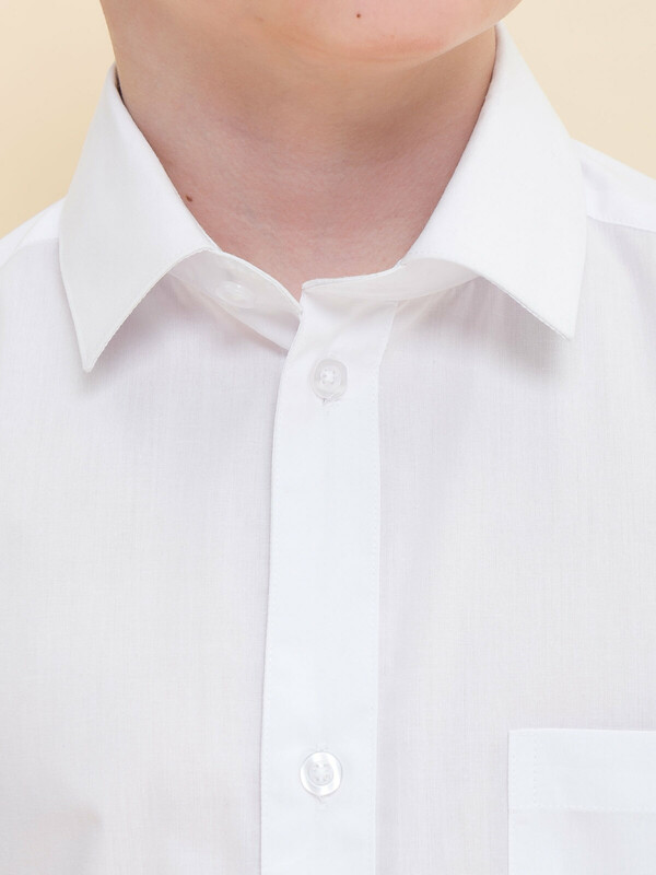 Школьная рубашка увеличенного объема для мальчиков. Преобладающий в составе ткани хлопок делает эту модель мягкой, дышащей и комфортной для ребёнка. Полиэстер помогает изделию сохранять форму и превосходный внешний вид. Рубашка с воротником типа windsor и нагрудным карманом традиционной формы — классика, не выходящая из моды. Подойдет для любого типа фигуры, не будет стеснять движения. Отличный вариант для школьной формы и любого торжественного случая. Идеально белый цвет без желтого и серого оттенка.