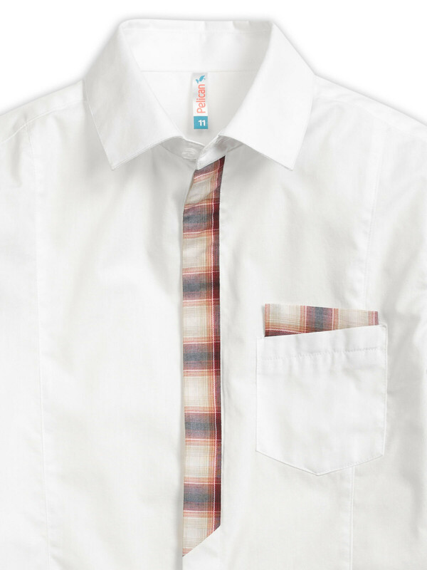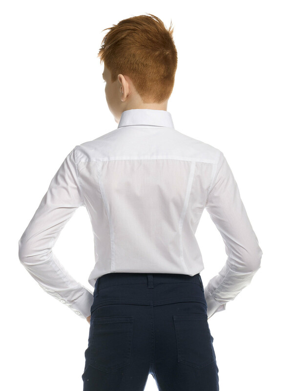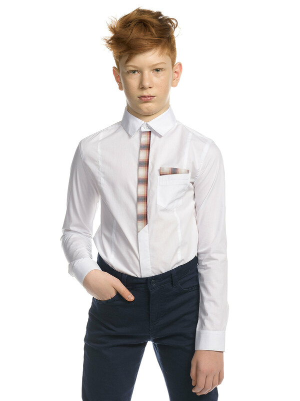 Школьная рубашка с длинным рукавом для мальчика прилегающего силуэта. Натуральный хлопок в составе позволяет телу дышать, ткань приятна на ощупь и проста в уходе – быстро сохнет и легко гладится. Воротник не давит в застегнутом виде. Изюминка модели – имитация клетчатого галстука и платка в кармане. Идеальна для создания делового стиля. Отлично смотрится в паре с жилетом или пиджаком – классический вариант школьной одежды.