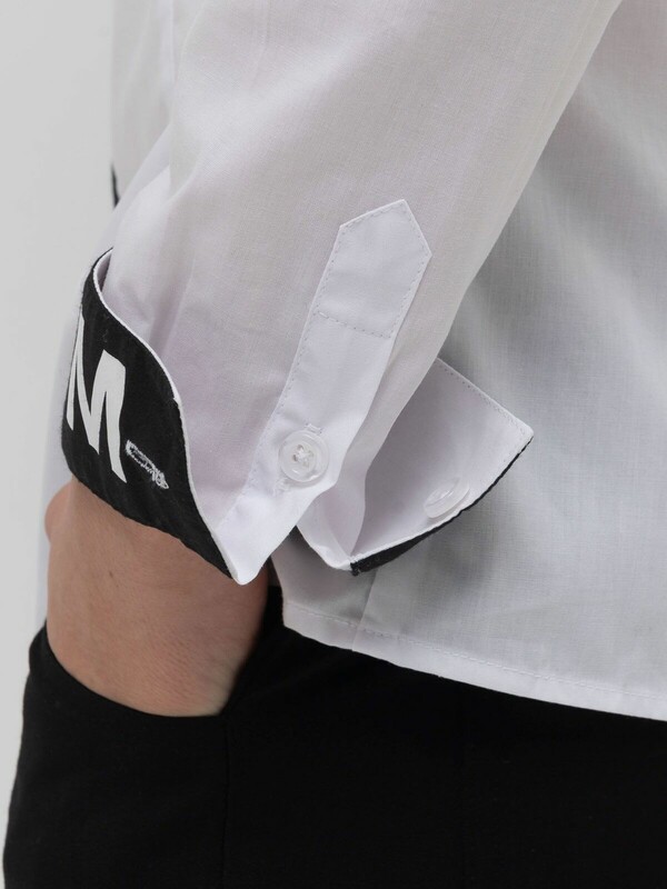 А если отвернуть манжеты, то внутренний текстовый принт НОРМ на них превратит рубашку в модную крутую модель.