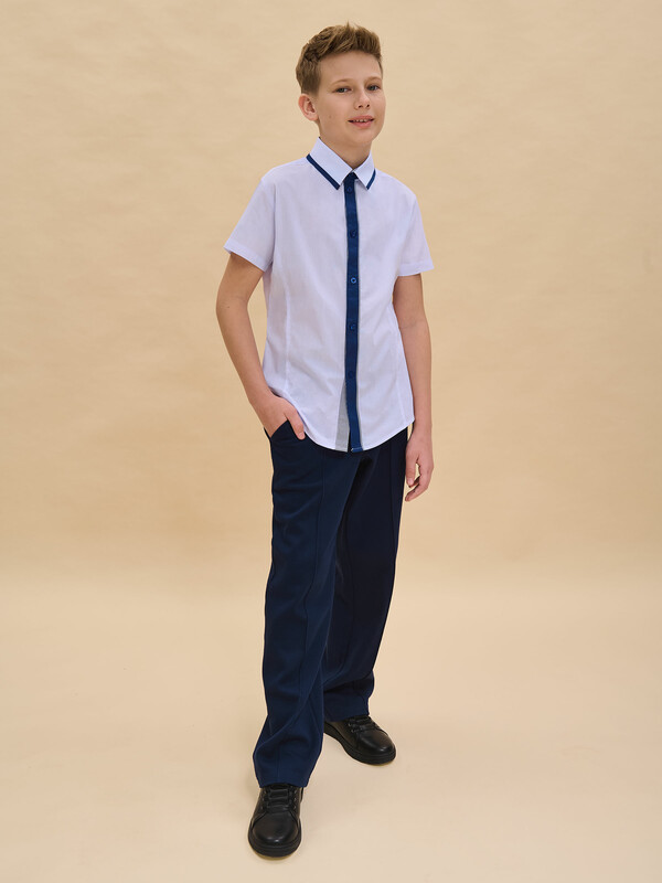 Рубашка для мальчика школьная - остается незаменимой частью гардероба. Детская рубашка представляет собой полуприлегающий силуэт с рельефами от проймы по переду и спинке. Сорочка для мальчика дополнена воротником типа «Виндзор», который позволяет носить её как с классическим галстуком или галстуком-бабочкой, так и без них. Декорирована контрастной отделкой по стойке и внешнему краю воротника, внешней планке. Нижняя планка и декоративный кант вдоль планки выполнены из ткани в полоску, что придает рубашке стильный вид и выгодно отличает её от банальных однотонных моделей. Рубашка для мальчика имеет темный цвет отделки, что позволяет реже стирать изделие. В составе ткани преобладает высококачественный хлопок, который отлично пропускает воздух, давая коже дышать и не перегревая ребёнка. Полиэстер же обеспечивает сохранность формы изделия. Для школьных рубашек мы используем сорочечную ткань, плотностью 100 гр/м2. В ассортименте представлена рубашка на мальчика в синем, белом и голубом цвете, которые легко сочетаются с любыми брюками, пиджаками и жилетами. Стильная рубашка школьная - прекрасный выбор для повседневной носки в школу и более торжественных случаев. Рекомендуемые инструкции по уходу: стирать при температуре не выше 30 °С, без предварительного замачивания, с изнанки, расправить перед сушкой. Это поможет сохранить качество и цвет на длительное время. Выберите нужный размер, ориентируясь на таблицу размеров на фото. Помните, что цвет товара на экране вашего устройства может отличаться от реального цвета изделия.