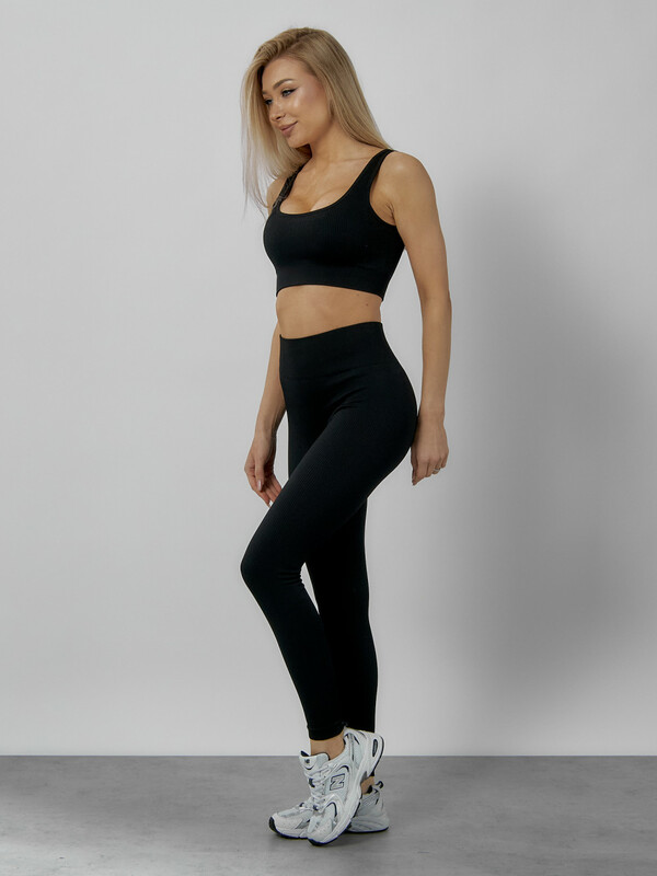 Спортивный костюм для фитнеса женский черного цвета 20006Ch