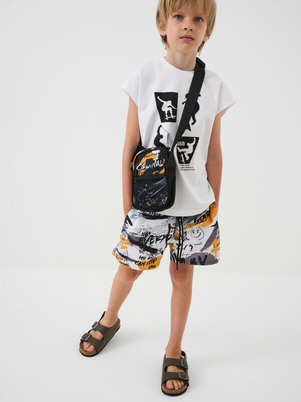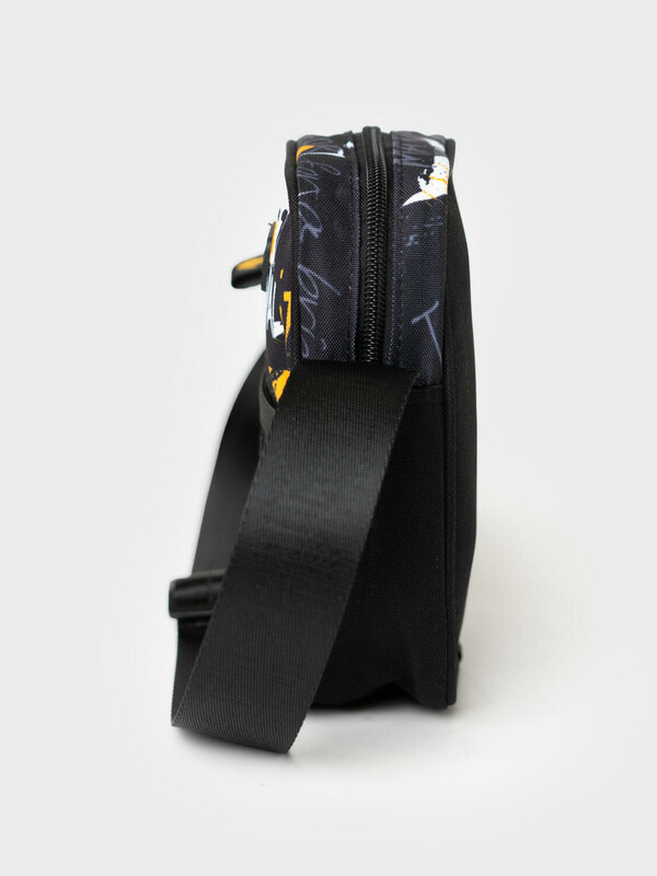 Трендовая сумка кросс-боди для мальчика-подростка. Регулируемый брендированный ремень. Основной отсек на молнии, спереди дополнительный карман на молнии, сзади карман для транспортной карты. Внутри есть карман на молнии. Параметры: высота - 18 см, ширина -13 см, глубина - 6 см.