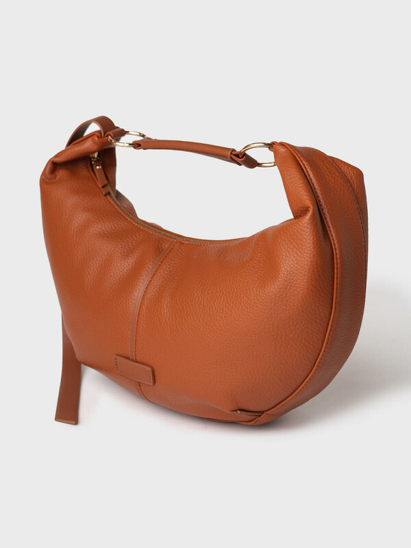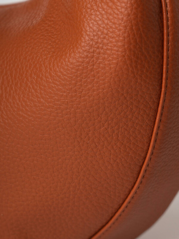 Женская сумка трендовой формы "луна". Сумка выполнена из мягкой искусственной кожи красивого карамельного цвета. Сумку можно носить на плече. Сумка имеет одно отделение на молнии. Внутри есть три кармана: два открытых и один на молнии. Параметры сумки: высота - 30 см, ширина - 44 см, глубина - 6 см. В подарок идет брендированный пыльник.
