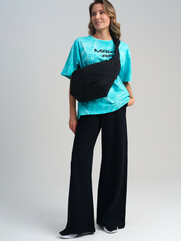 Трендовая женская дутая сумка с оригинальной простежкой. Форма полумесяц. Яркая подкладка является акцентной деталью этой модели. Сумку можно носить как на плече, так и как кросс-боди. Сумка закрывается на молнию. Внутри есть карман на молнии для документов. Параметры: высота - 28 см, ширина - 56 см, глубина - 15 см.