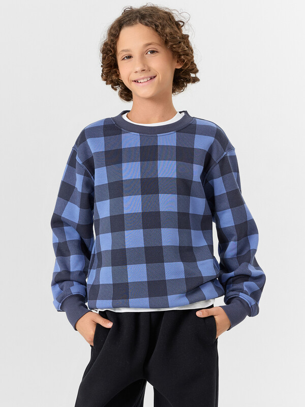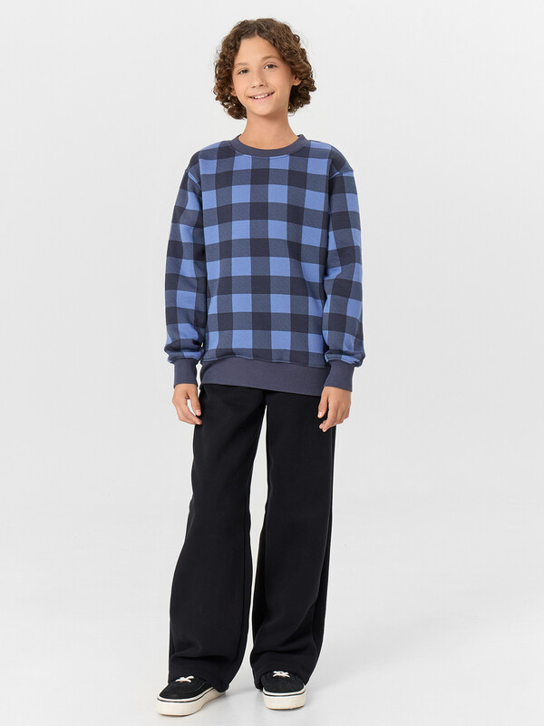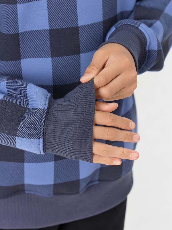 Джемпер свободного силуэта. Рукава длинные, втачные. Линия плеча спущена. Перед и спинка цельнокроенные. Горловина круглой формы обработана обтачкой из рибаны. По низу рукавов и джемпера притачены манжеты и пояс из рибаны.