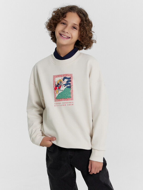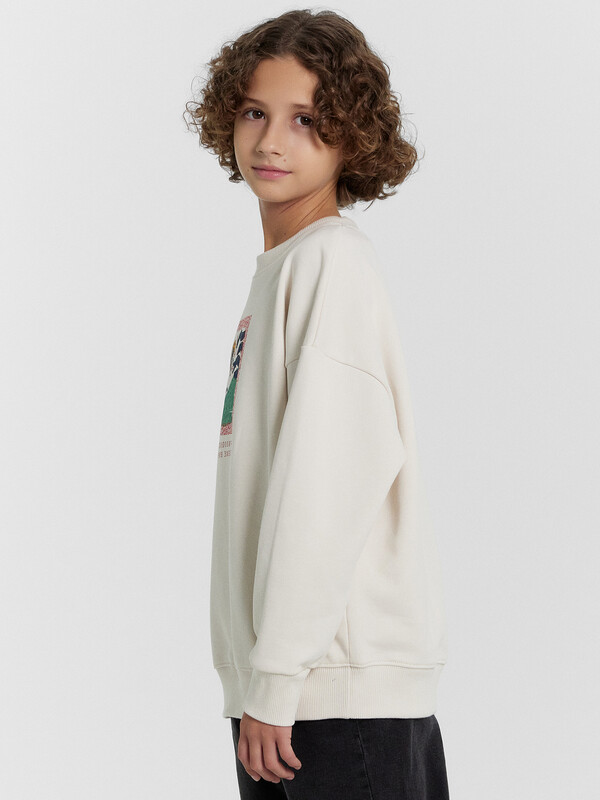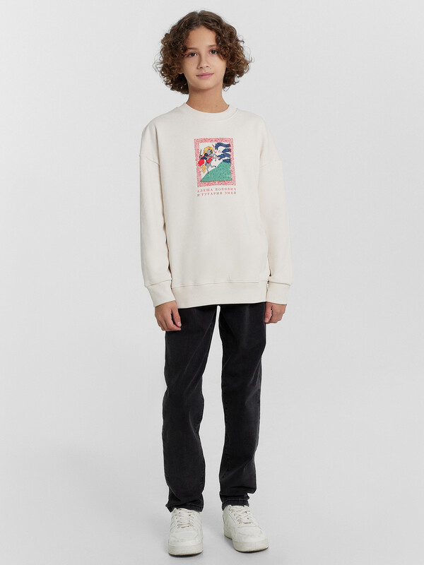 Джемпер изготовлен из футера. Джемпер свободного силуэта.