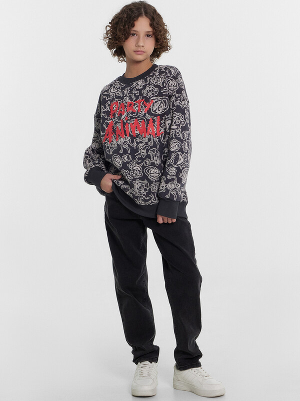 Джемпер изготовлен из футера. Джемпер свободного силуэта.