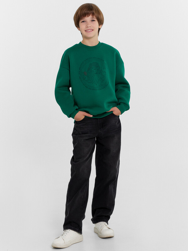 Джемпер изготовлен из футера. Джемпер свободного силуэта.