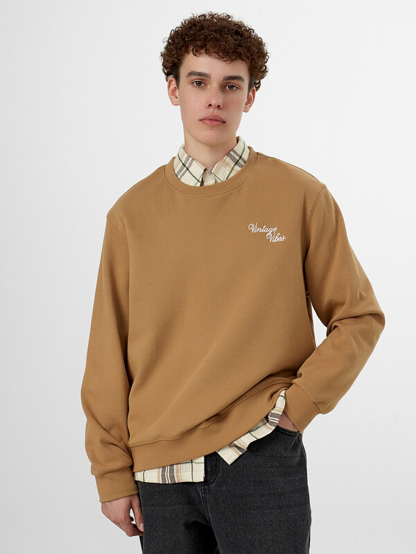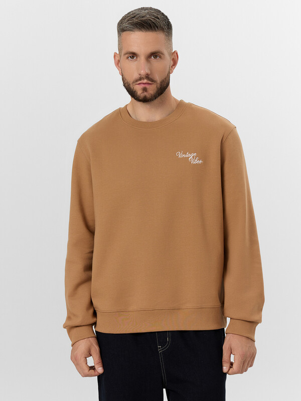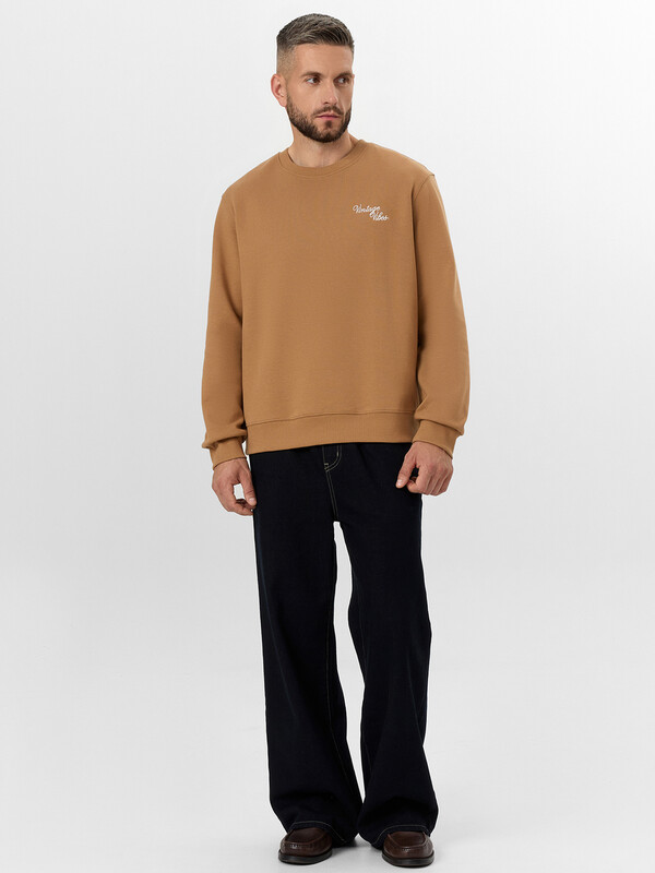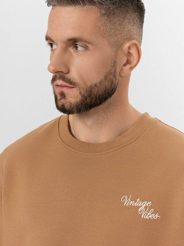 Надпись "Винтажная атмосфера" придает модели индивидуальность и трендовый акцент. Если вы хотите купить бежевый мужской свитшот, который сочетает качественные материалы, продуманный дизайн и универсальность, эта модель станет отличным выбором.