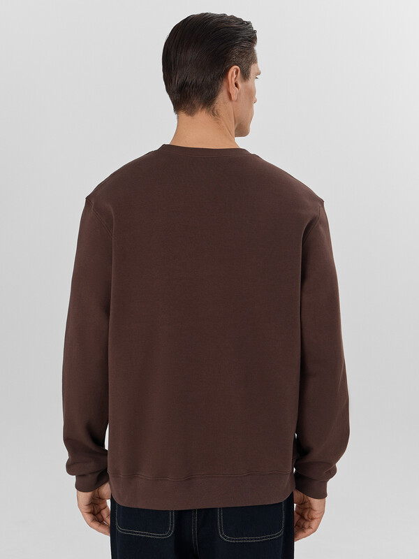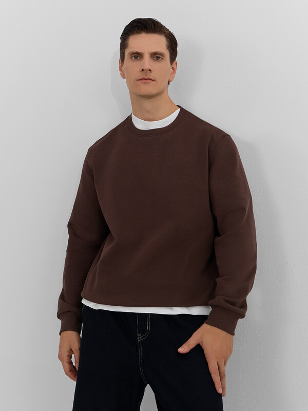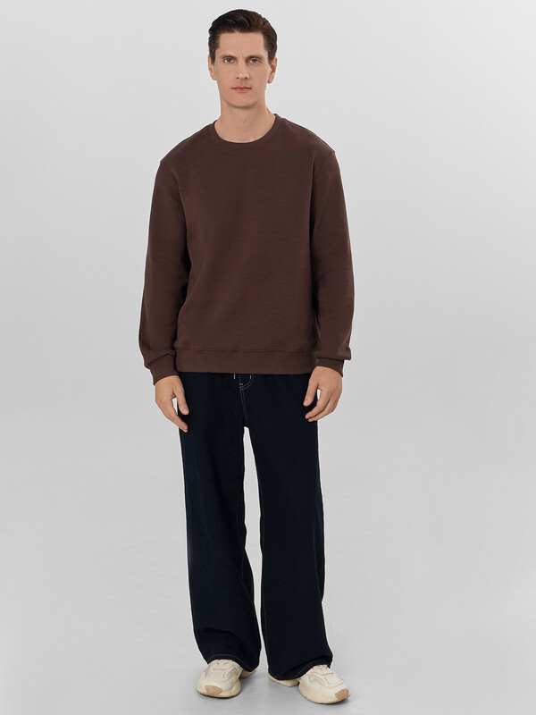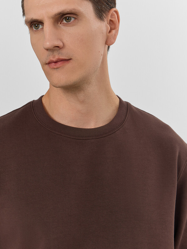 Толстовка свободная, прямая. Горловина округлой формы обработна обтачкой из рибаны. Рукава втачные длинные. Линия плеча слегка спущена. По окату рукава и плечевым швам отделочные