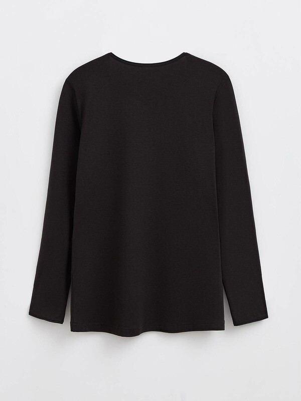 Термофуфайка с круглым вырезом создана из легкого дышащего материала специально для носки в холодную погоду. В составе полотна содержится Acrilliс — современный высокотехнологичный заменитель шерсти, способствующий поддержанию комфортной температуры тела и оптимальному перераспределению теплового баланса организма в условиях пониженных температур. · круглый вырез горловины с эластичной тесьмой· длинные втачные рукава· прилегающий крой· комфортные плоские швы· легкое и мягкое термополотно с заменителем шерсти· подходит в качестве первого слоя одежды при температуре от -0°C до -15°C· предназначена для повседневной носки.