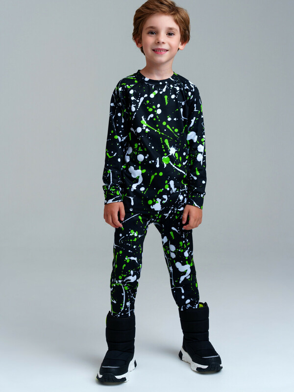 Термокомплект трикотажный для мальчиков: брюки, толстовка (98, черный)(PlayToday)