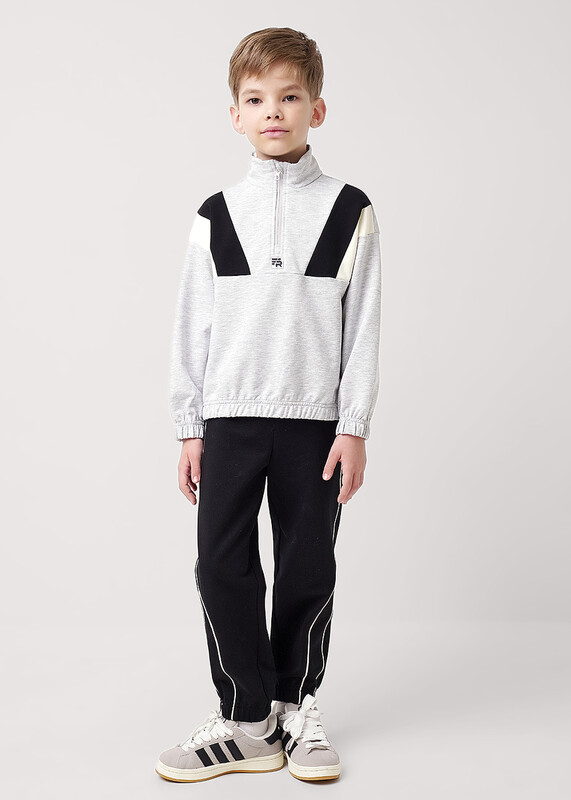 Толстовка в стиле колор-блок из мягкого трикотажа идеально подойдёт для активного отдыха и повседневных образов! Контрастные вставки в области плеч, воротник - стойка с укороченной молнией. Сочетай модель с брюками из новой коллекции и будь в тренде!