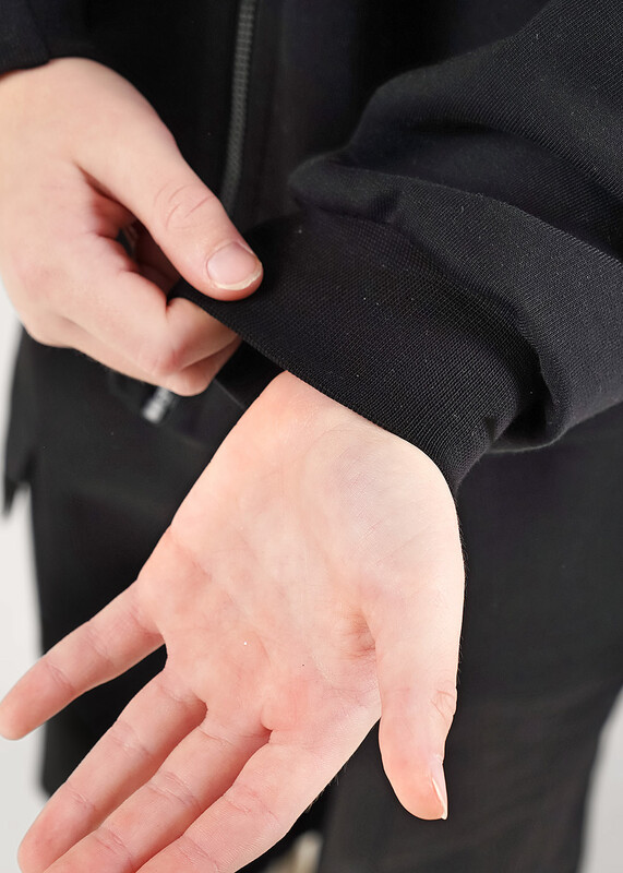 Удобная черная толстовка для мальчика с молнией, капюшон и боковые части из ветрозащитной плащевой ткани. Капюшон регулируется шнурком, есть вместительные карманы. Эластичные манжеты обеспечивают комфортную посадку по фигуре.