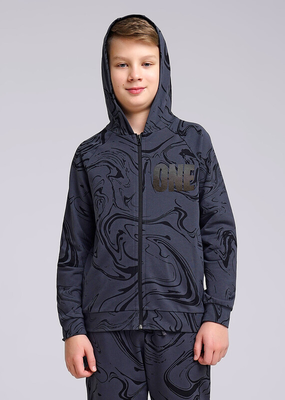 Толстовка из футера с ярким принтом - универсальная вещь в гардеробе! Удобный капюшон и практичный цвет. Для более стильного образа сочетай модель с брюками в цвет из коллекции.