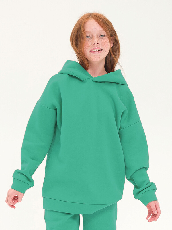 Худи для девочек и мальчиков из футера с начесом свободного силуэта с длинным рукавом, без карманов. Это однотонная базовая вещь для детского гардероба. Красивая и яркая одежда для ребенка, практичная и удобная при надевании для родителей. Двухшовный капюшон с подкладом из основного материала аккуратно ложится по голове и убережет от холода. Манжеты рукавов и низа изделия из основной ткани. Не утягивают, но придают силуэт. Деликатная изюминка модели - силиконовая буква P из логотипа бренда на правом рукаве.