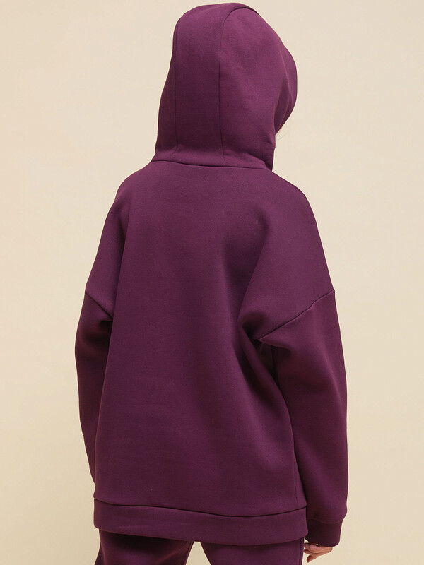 Худи для девочек и мальчиков из футера с начесом свободного силуэта с длинным рукавом, без карманов. Это однотонная базовая вещь для детского гардероба. Красивая и яркая одежда для ребенка, практичная и удобная при надевании для родителей. Двухшовный капюшон с подкладом из основного материала аккуратно ложится по голове и убережет от холода. Манжеты рукавов и низа изделия из основной ткани. Не утягивают, но придают силуэт. Деликатная изюминка модели - силиконовая буква P из логотипа бренда на правом рукаве.