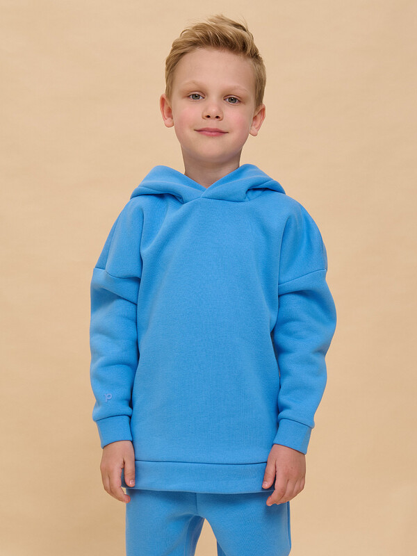 Худи для девочек и мальчиков из футера с начесом свободного силуэта с длинным рукавом, без карманов. Это однотонная базовая вещь для детского гардероба. Красивая и яркая одежда для ребенка, практичная и удобная при надевании для родителей. Двухшовный капюшон с подкладом из основного материала аккуратно ложится по голове и убережет от холода. Манжеты рукавов и низа изделия из основной ткани. Не утягивают, но придают силуэт. Деликатная изюминка модели - силиконовая буква P из логотипа бренда на правом рукаве.