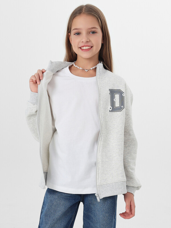 Стильная толстовка для девочек — это практичный и комфортный элемент гардероба, который станет незаменимым спутником в любое время года. Модель выполнена из футера без подчеса и имеет спущенное плечо, что придает ей стильный и современный вид. По низу рукавов — отрезные манжеты из рибаны, а отрезной пояс также выполнен из рибаны, что обеспечивает плотное и комфортное прилегание к фигуре. Застежка-молния позволяет легко надевать и снимать толстовку, делая ее удобной в использовании. Высококачественный хлопок в составе изделия обеспечивает мягкость и долговечность. А универсальный дизайн позволяет сочетать эту толстовку с различными элементами гардероба, создавая стильные повседневные образы. Она станет отличным вариантом как для занятий спортом, так и для прогулок с друзьями. Рекомендуем!