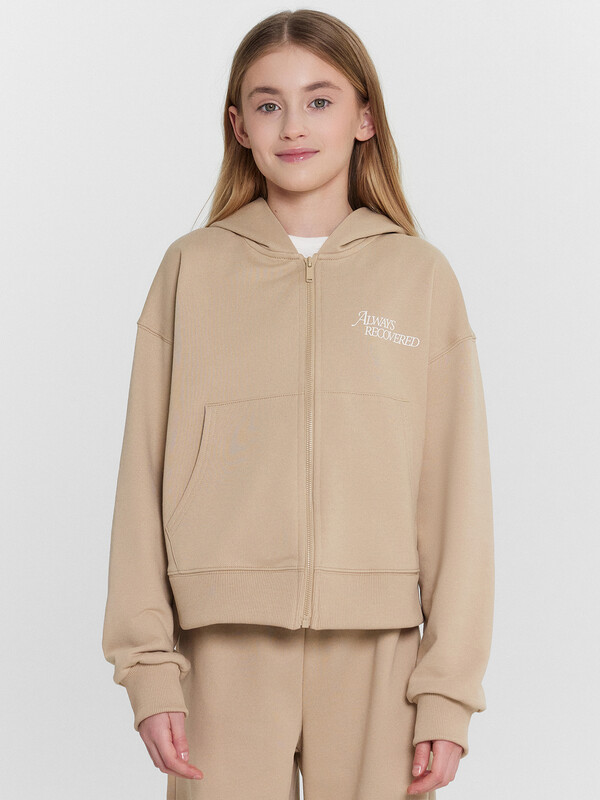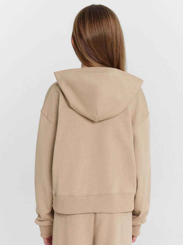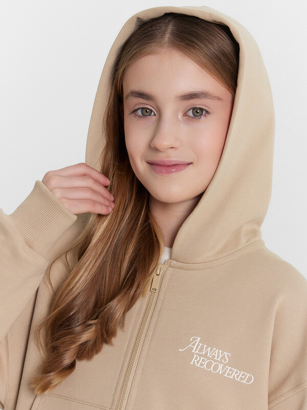 Толстовка для девочек прямого силуэта с капюшоном. Капюшон на подкладке из основного полотна.