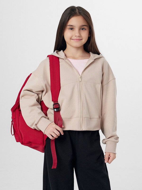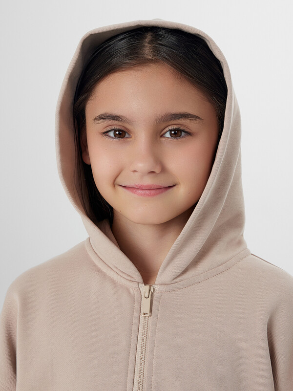 Толстовка для девочек прямого силуэта с капюшоном. Капюшон на подкладке из основного полотна.