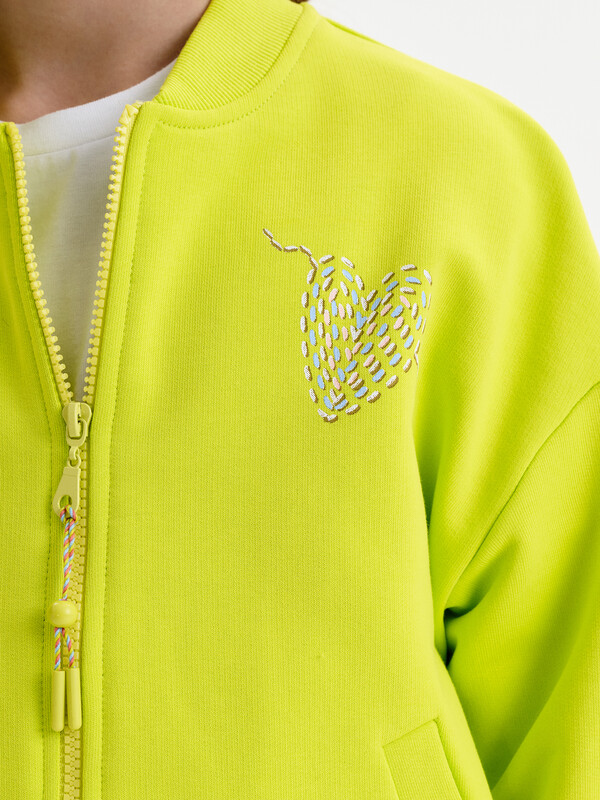 Толстовка oversize для девочки. Модель средней длины из мягкого хлопкового футера, плотностью 342 гр/кв м. Свободный крой с объёмом по линии груди и низа, мягкое спущенное плечо. Застёжка на центральную молнию. Узкий воротник-стойка и плотные манжеты на рукавах и по низу изделия из эластичной рибаны создают стильную имитацию бомбера. По бокам — удобные прорезные карманы с листочки. Перевод: ЭТО СДЕЛАНО ПРОСТО ДЛЯ РАЗВЛЕЧЕНИЯ (ПО ФАНУ, ПО ПРИКОЛУ - СЛЕНГ)