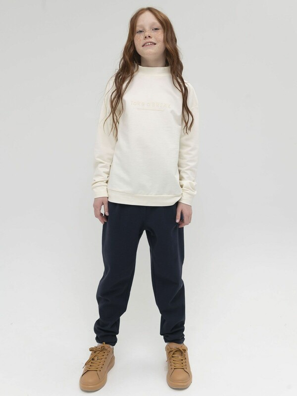 Силуэт свободный, но манжеты на рукавах и по низу плотно прилегают по фигуре. Особенная деталь: приятный на ощупь выпуклый принт «Тake a break» (перевод «Возьми паузу»).