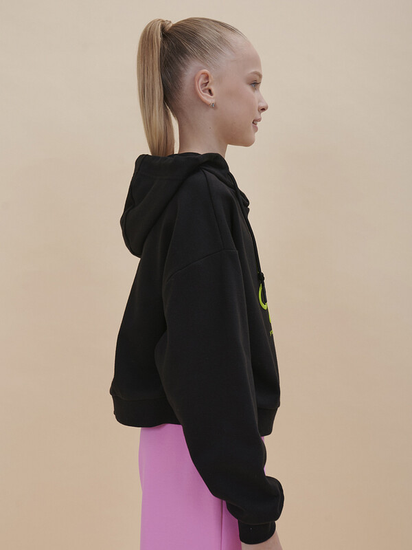 Стильное укороченное худи для девочек. Худи из футера трендового оверсайз-силуэта со спущенным плечом подарит ребёнку комфорт и не будет стеснять его движений. Худи с капюшоном с двумя швами, что обеспечивает анатомически правильную форму и комфортную посадку по голове. Худи однотонное, с принтом, по низу изделия и рукавов манжета из рибаны. За толстовкой легко ухаживать. В составе ткани преобладает высококачественный хлопок — худи мягкое и отлично пропускает воздух, позволяя коже ребёнка дышать. Благодаря эластану изделие сохраняет великолепную форму в течение долгого времени. Джемпер выполнен в двух актуальных цветах: зеленом и черном. Его легко сочетать с любыми брюками, легинсами, джинсами. В линейке представлены следующие размеры: 1 (86); 2 (92); 3 (98); 4 (104); 5 (110); 6 (116); 7 (122); 8 (128); 9 (134); 10 (140); 11 (146). Худи детское подходит девочкам дошкольного возраста, младшим школьницам и девочкам-подросткам. Модель идеальна для детского сада, прогулок, отдыха, её можно носить дома. Худи без начёса оверсайз подходит для круглогодичного применения: летом, осенью, зимой, весной и демисезон. Это замечательный подарок дочери, внучке или сестре на День рождения и любой другой праздник. Выбирайте нужный размер по таблице размеров на фото. Цвет товара на экране вашего устройства может отличаться от цвета изделия вживую.