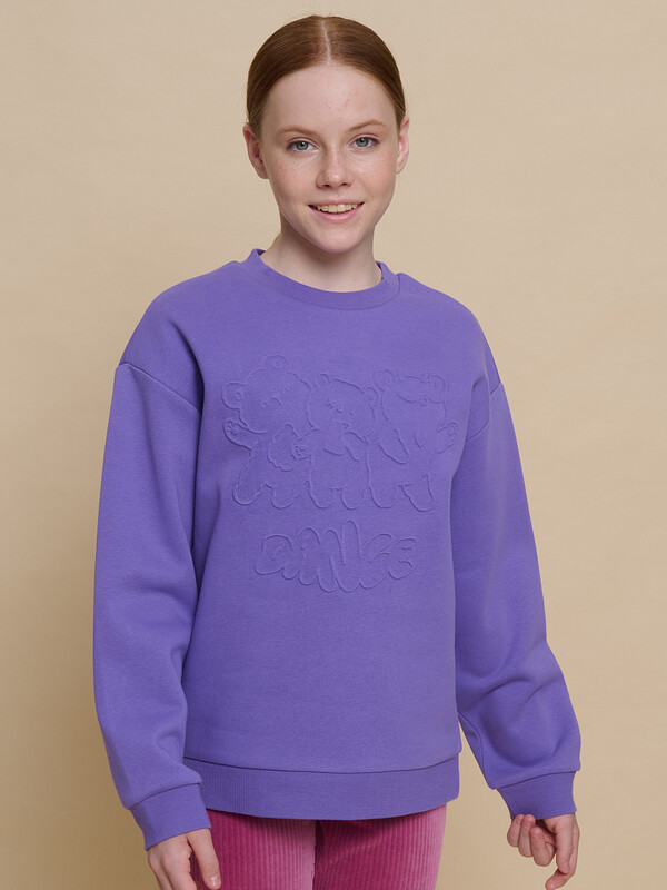 Свитшот детский для девочки. Свободная толстовка со спущенным плечом подарит ребёнку комфорт и станет стильным дополнением гардероба. Объёмный джемпер — актуальный модный тренд. Манжеты, отделка горловины и низа изделия выполнены из эластичной рибаны (ткани в рубчик). Она не растягивается, отлично сохраняет форму, при этом ребёнку удобно надевать и снимать свитшот. Модель неприхотлива в уходе. Свитшот с принтом по переду выполнен из футера с начёсом. Модный пресс-принт в виде забавных медвежат мягкий и эластичный, великолепно переносит частые стирки. Надпись переводится: «танцуй». В составе ткани преобладает высококачественный хлопок — толстовка приятна на ощупь и прекрасно пропускает воздух. Полиэстер помогает сохранить цвет и первозданный внешний вид надолго. Детский свитшот выполнен в в универсальном девичьем цвете, который легко сочетать с любыми брюками, джинсами. Оверсайз-свитшот подходит как для маленьких девочек, так и для девочек-подростков. Джемпер идеален для детского сада, прогулок, активного отдыха, дома. Свитшот с начесом можно носить круглый год. Помните о правильном уходе за изделием: рекомендуется стирать при температуре не выше 30 °C, без предварительного замачивания, с изнанки. Это поможет сохранить качество и цвет свитшота на длительное время.