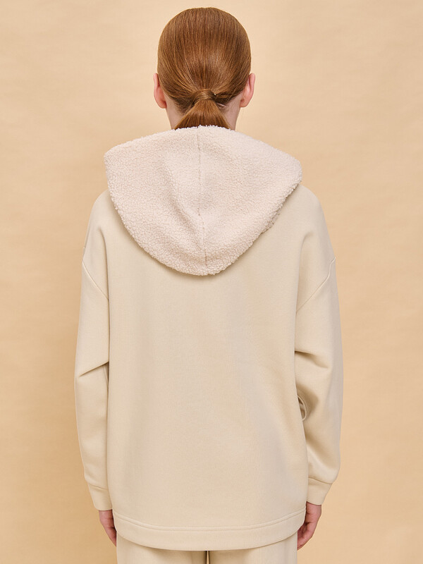 Худи детское для девочки актуального оверсайз-силуэта со спущенным плечом. Трендовое сочетание разных фактур — футера с начёсом и искусственного меха — поможет создать стильный и одновременно уютный образ. Худи с капюшоном из искусственного меха с подкладкой из мягкого хлопка может заменить ветровку. Большой и удобный накладной карман по переду также выполнен из искусственного меха с приятной на ощупь фактурой барашка. По низу утяжка с пластиковым стоппером — можно регулировать ширину и посадку худи. Модель неприхотлива в уходе. Оверсайз худи выполнено из ткани с высоким содержанием хлопка — джемпер мягкий, воздухопроницаемый и гипоаллергенный. Полиэстер помогает сохранить цвет и первоначальный внешний вид надолго. Модель украшает модный пресс-принт (изображение в тон изделия выдавлено по специальной технологии), изображающий троих милых медвежат, надпись переводится: «танцуй». Изделие выполнено в универсальной расцветке, его легко комбинировать с любыми брюками, джинсами. Отличное худи оверсайз для девочки дошкольного и младшего школьного возраста, а также девочки-подростка. Джемпер подходит для детского сада, прогулок, отдыха, дома. Худи оверсайз с капюшоном подходят для круглогодичной носки. Помните о правильном уходе за изделием: рекомендуется стирать при температуре не выше 30 °C, без предварительного замачивания, с изнанки. Это поможет сохранить качество и цвет худи на длительное время.