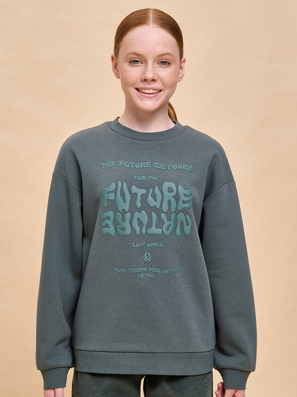 Свитшот детский для девочки. Свободная толстовка со спущенным плечом подарит ребёнку комфорт и станет стильным дополнением гардероба. Объёмный свитшот — актуальный модный тренд. Манжеты, отделка горловины и низа изделия выполнены из эластичной рибаны (ткани в рубчик). Она не растягивается, отлично сохраняет форму, при этом ребёнку удобно надевать и снимать свитшот. Модель неприхотлива в уходе. Свитшот с принтом по переду выполнен из футера с начёсом. Модный мягкий пуфф-принт приятный на ощупь, мягкий и эластичный, великолепно переносит частые стирки. Надписи переводятся: «будущее за тобой», «найди будущую природу», «счастливый мир и хорошие вещи произойдут с тобой». В составе ткани преобладает высококачественный хлопок — толстовка приятна на ощупь и прекрасно пропускает воздух. Полиэстер помогает сохранить цвет и первозданный внешний вид надолго. Детский свитшот выполнен в в универсальном цвете, который легко сочетать с любыми брюками, джинсами. Оверсайз-свитшот подходит как для маленьких девочек, так и для девочек-подростков. Джемпер идеален для детского сада, прогулок, активного отдыха, дома. Свитшот с начесом можно носить круглый год. Помните о правильном уходе за изделием: рекомендуется стирать при температуре не выше 30 °C, без предварительного замачивания, с изнанки. Это поможет сохранить качество и цвет свитшота на длительное время.