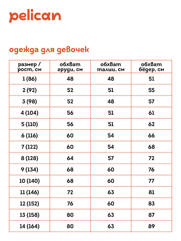 Не забывайте о выборе правильного размера. Используйте таблицу размеров на фотографии, чтобы выбрать подходящий вариант для вашей девочки.