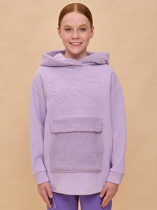 Худи детское для девочки актуального оверсайз-силуэта со спущенным плечом. Трендовое сочетание разных фактур — футера с начёсом и искусственного меха — поможет создать стильный и одновременно уютный образ. Худи с капюшоном из искусственного меха с подкладкой из мягкого хлопка может заменить ветровку. Большой и удобный накладной карман по переду также выполнен из искусственного меха с приятной на ощупь фактурой барашка. По низу утяжка с пластиковым стоппером — можно регулировать ширину и посадку худи. Модель неприхотлива в уходе. Оверсайз худи выполнено из ткани с высоким содержанием хлопка — джемпер мягкий, воздухопроницаемый и гипоаллергенный. Полиэстер помогает сохранить цвет и первоначальный внешний вид надолго. Модель украшает модный пресс-принт (изображение в тон изделия выдавлено по специальной технологии), изображающий троих милых медвежат, надпись переводится: «танцуй». Изделие выполнено в универсальной расцветке, его легко комбинировать с любыми брюками, джинсами. Отличное худи оверсайз для девочки дошкольного и младшего школьного возраста, а также девочки-подростка. Джемпер подходит для детского сада, прогулок, отдыха, дома. Худи оверсайз с капюшоном подходят для круглогодичной носки. Помните о правильном уходе за изделием: рекомендуется стирать при температуре не выше 30 °C, без предварительного замачивания, с изнанки. Это поможет сохранить качество и цвет худи на длительное время.