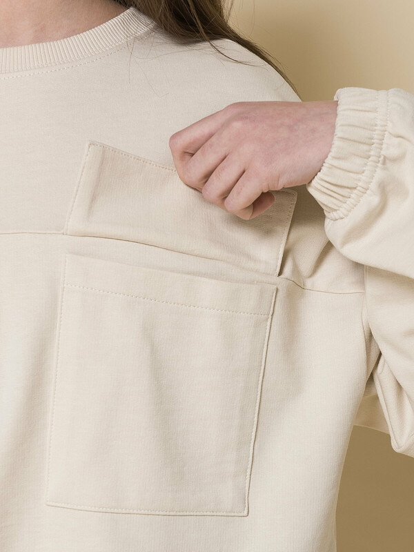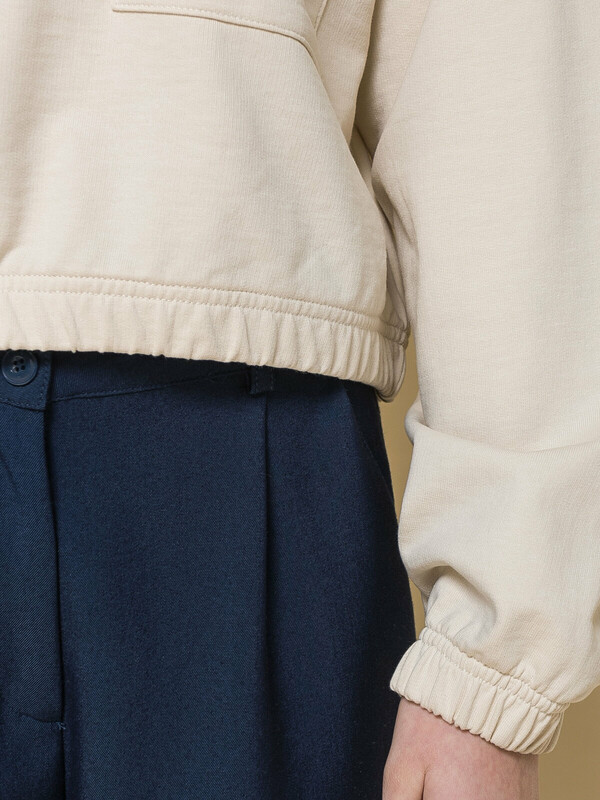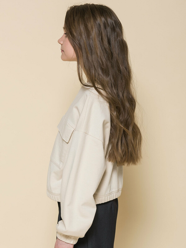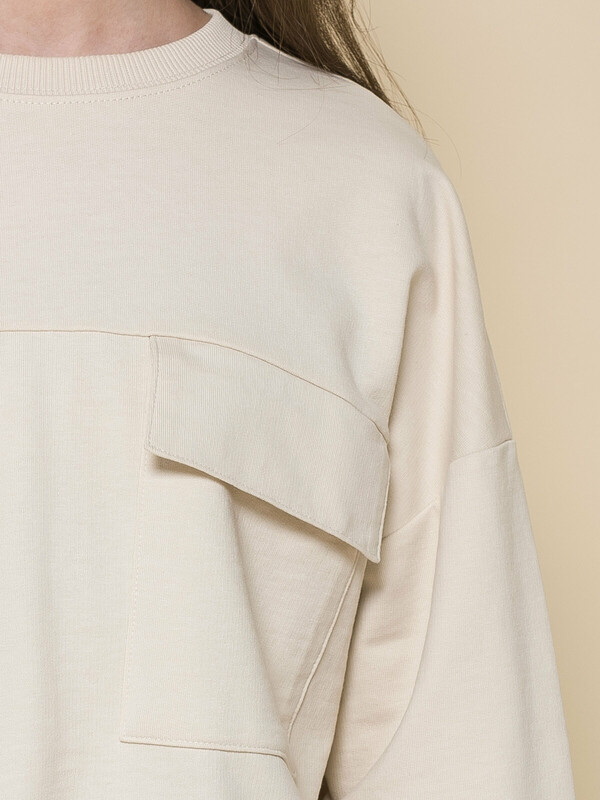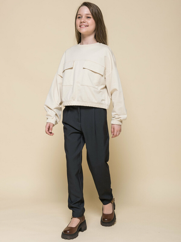 Модная укороченная толстовка из мягкого футера для девочки. 100% хлопок — ткань дышащая, приятная на ощупь и очень комфортная. Горловина отделана рибаной — долго не теряет форму не вытягивается. Низ изделия и рукавов собраны на широкую внутреннюю резинку — модель красиво и аккуратно сидит по фигуре, рукава не сползают. На груди два накладных кармана с клапанами — актуальный тренд сезона. Благодаря свободному силуэту такая толстовка подходит девочкам с разными типами фигуры. Её можно брать на вырост, она долго не станет малой. Стильный и практичный вариант школьной одежды для девочек.