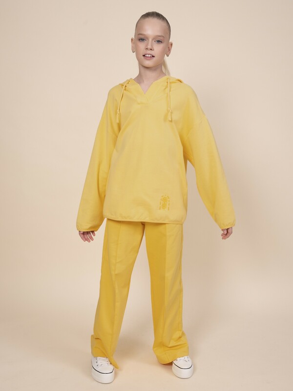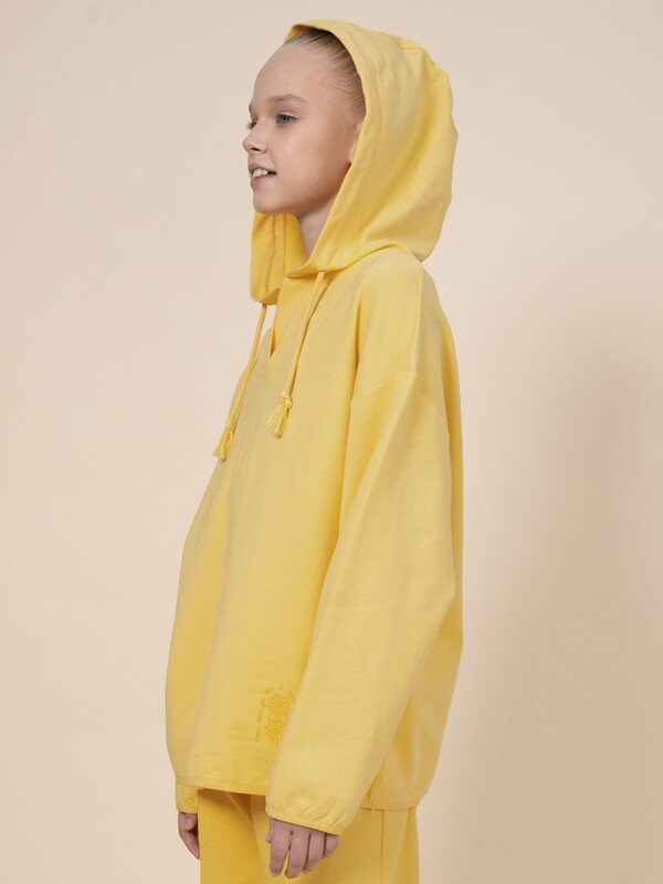 Стильное худи для девочки. Покорит сердца девочек современным дизайном, невероятно удобным кроем и уникальным внешним видом. Худи из хлопкового футера с петлей, мягким спущенным плечом. По низу изделия и рукавов эластичная окантовка. Удобная горловина в виде планки, без пуговиц. Капюшон с регулировкой шнурками, концы шнурков оформлены кисточками. Толстовка худи с принтом и рисунком, весь декор в тон. Худи для подростков свободного кроя впишется в детский гардероб и удивит своей комбинаторностью, с ним сочетаются любые подростковые вещи. Толстовка для малыша и подростка подойдет для прогулок весной и как милое, мягкое, яркое теплое худи для долгих вечеров с друзьями на лето. Не боится испытаний активными играми и частыми стирками. Прочная, тактильно приятная и безопасная для ребенка ткань очень износостойкая и надолго сохранит красивый внешний вид. Удлиненное худи подойдет как детская домашняя одежда для дома, для повседневной носки на каждый день, как весенняя и летняя объемная вещь. Изделие предствалено в желтом цвете. В линейке представлены следующие размеры: 1 (86);2 (92); 3 (98); 4 (104); 5 (110); 6 (116); 7 (122); 8 (128); 9 (134); 10 (140); 11 (146). Выбирайте нужный размер по таблице размеров на фото. Цвет товара на экране вашего устройства может отличаться от цвета изделия вживую.