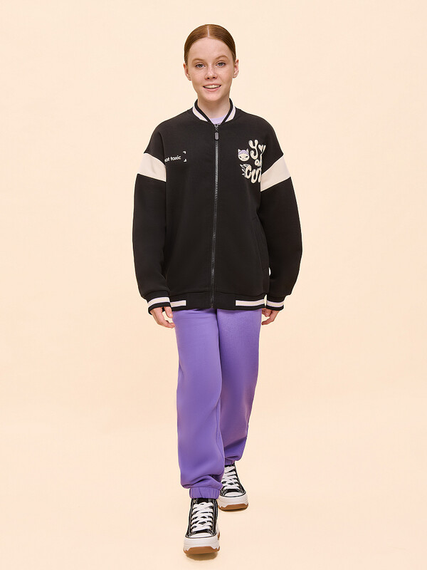 Бомбер трикотажный для девочки. Объёмная удлинённая куртка заменит ветровку в прохладную погоду и поможет создать стильный образ. Бомбер оверсайз одинаково классно смотрится на девочках с любой фигурой. Воротник из декоративной рибаны — сохраняет отличную форму в течение длительного времени и стильно выглядит. Толстовка детская на молнии дополнена манжетой из широкой рибаны по низу, из неё же выполнены манжеты рукавов — элементы классического бомбера. В составе ткани преобладает высококачественный хлопок — бомбер комфортный и воздухопроницаемый. Полиэстер обеспечивает долговечность и прочность. По переду удобные прорезные карманы. На рукавах бомбер детский декорирован актуальными вставками контрастного цвета. Толстовка на молнии для девочки также украшена модными пуфф-принтами по переду, надписи переводятся: «ты милая», «не токсичная». Принты эластичне и прочные, великолепно переносят частые стирки. Куртка выполнена в универсальном цвете, её легко сочетать с любой одеждой. Уютная и стильная куртка для девочки неприхотлива в уходе. Помните о правильном уходе за изделием: рекомендуется стирать при температуре не выше 30 °C, без предварительного замачивания, с изнанки. Это поможет сохранить качество и цвет бомбера на длительное время.