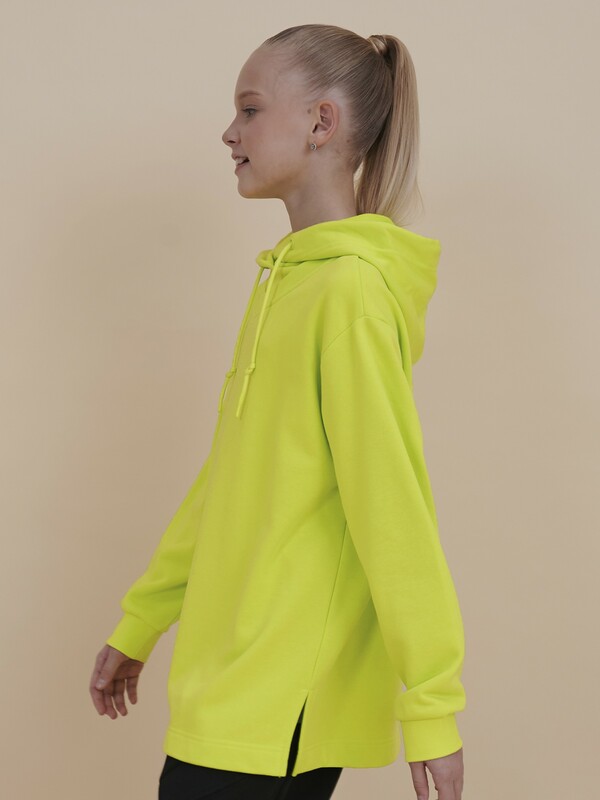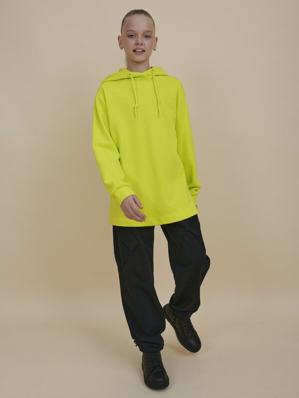 Удлиненная модель худи из плотного футера прямого силуэта. Расслабленный объем изделия, слегка спущенное плечо. Особенность модели - актуальный тренд на многослойность: жилет с V-образным вырезом горловины как будто одет на худи. V-образный вырез подчеркивается пайпингом из рибаны. Капюшон из основной ткани с регулировкой по внешнему краю с помощью шнурка, продетого через люверсы. Рукав по низу собирается на манжету из рибаны. Низ изделия прямой, свободный. В боковых швах небольшие разрезы. Худи без принта, весь декор в тон изделия. Худи для подростков свободного кроя впишется в детский гардероб и удивит своей комбинаторностью, с ним сочетаются любые подростковые вещи. Толстовка для малыша и подростка подойдет для прогулок весной и как милое, мягкое, яркое теплое худи для долгих вечеров с друзьями на лето. Не боится испытаний активными играми и частыми стирками. Прочная, тактильно приятная и безопасная для ребенка ткань очень износостойкая и надолго сохранит красивый внешний вид. Удлиненное худи подойдет как детская домашняя одежда для дома, для повседневной носки на каждый день, как весенняя и летняя объемная вещь. Изделие предствалено в желтом цвете. В линейке представлены следующие размеры: 1 (86);2 (92); 3 (98); 4 (104); 5 (110); 6 (116); 7 (122); 8 (128); 9 (134); 10 (140); 11 (146). Выбирайте нужный размер по таблице размеров на фото. Цвет товара на экране вашего устройства может отличаться от цвета изделия вживую.