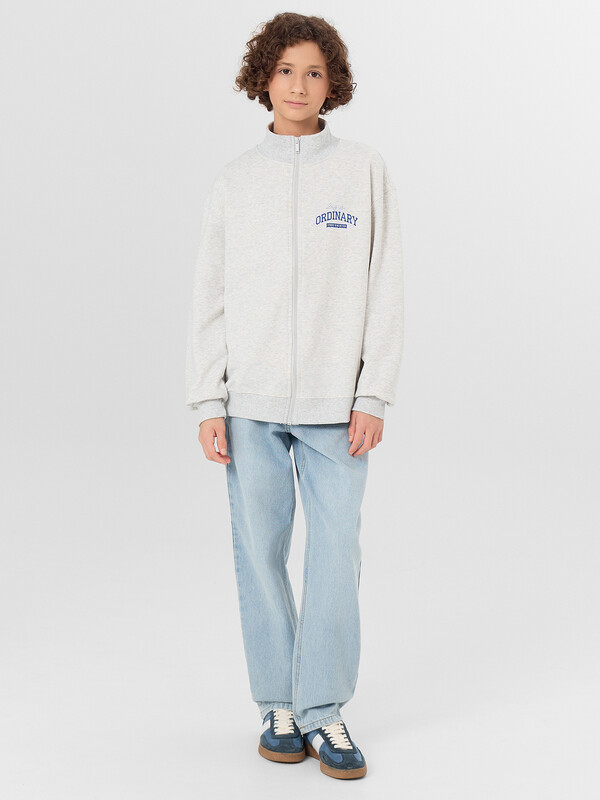 Представляем вашему вниманию стильную толстовку для мальчиков. Этот практичный и комфортный элемент гардероба станет незаменимым спутником в любое время года. Модель выполнена из футера без подчеса, со спущенным плечом. По низу рукавов - отрезные манжеты из рибаны. Отрезной пояс также выполнен из рибаны, что обеспечивает плотное и комфортное прилегание к фигуре. Застежка-молния позволяет легко надевать и снимать толстовку. В составе изделия - высококачественный хлопок. Универсальный дизайн позволяет сочетать ее с различными элементами гардероба, создавая стильные повседневные образы. Толстовка станет отличным вариантом как для занятий спортом, так и для прогулок с друзьями. Рекомендуем!